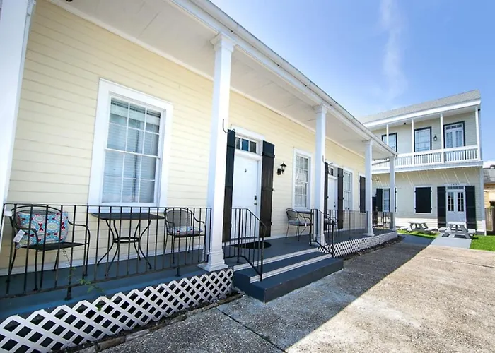 Monthly - Dumaine Historic Gem - Front House 1Bed Villa houses an equipped kitchen with a refrigerator, an oven, and kitchenware. Guests are invited to dine at Cafe Du Monde, located 13 minutes' stroll away. Thanks to Elk Place and Canal bus stop, located 600 metres away, guests can easily explore New Orleans.